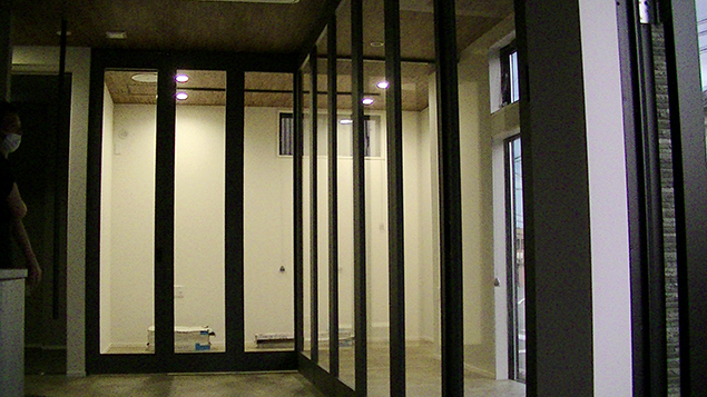 ・店内と愛猫のプレイルームを框戸スライディングウォールで間仕切り