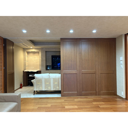 当社のスライディングウォールは軽量で、ご高齢の方でも簡単に開閉・収納ができます。また、引戸を組み合わせて出入口をつくることで、より使いやすい仕様に仕上げています。