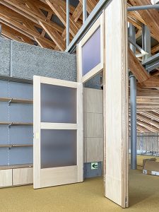弊社のスライディングウォールはでっぱりのないフラットハンドルを採用しており、